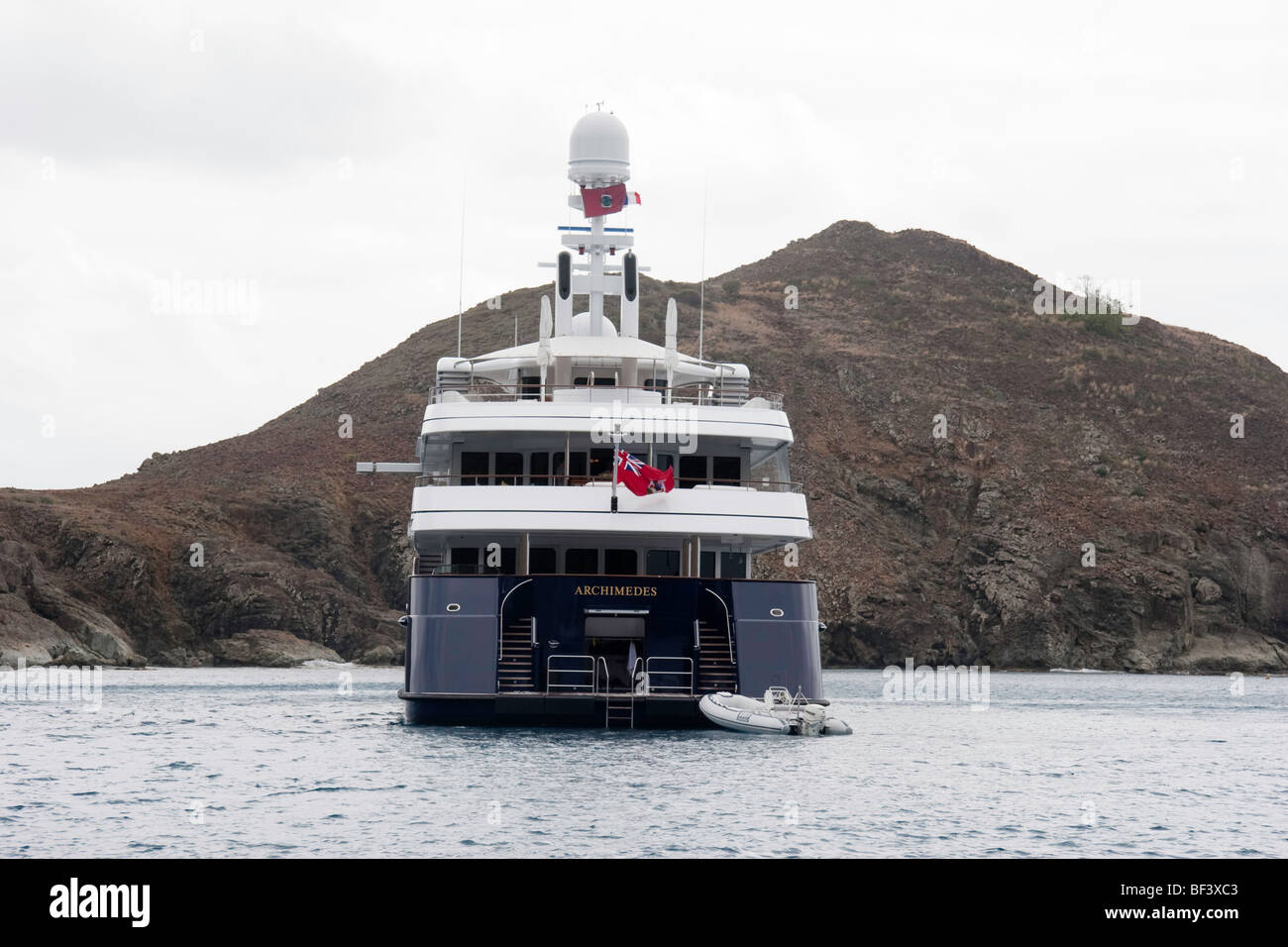 Super Yacht Archimedes Anchored At Ile Fourchue Stock Photo Alamy